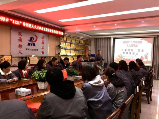 會議傳達學習了河南安陽“11·21”特別重大火災事故警示》專題教育片,學習了《河南安陽市凱信達商貿有限公司“11·21” 特別重大火災事故調查報告》。